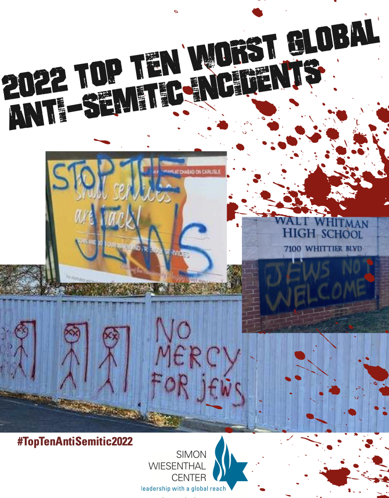 Document from Simon Wiesenthal Center: Top 10 Worst Global Incidents of Antisemitism in 2022
