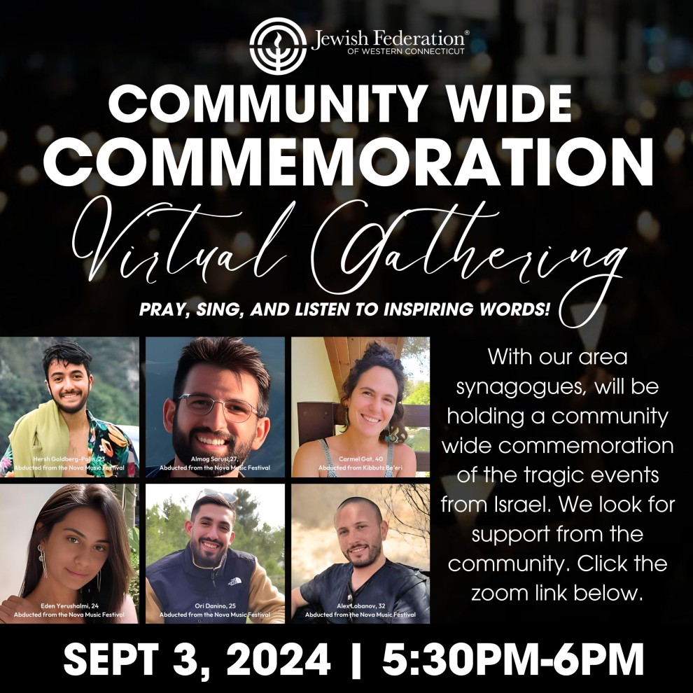 YOUR JFED, in a cooperative effort with our area synagogues, will be holding a community wide commemoration of the tragic events from Israel. We are all still sad, angry, upset. We look for support from the community.